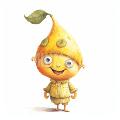 A cute lemon character standing and smiling.
