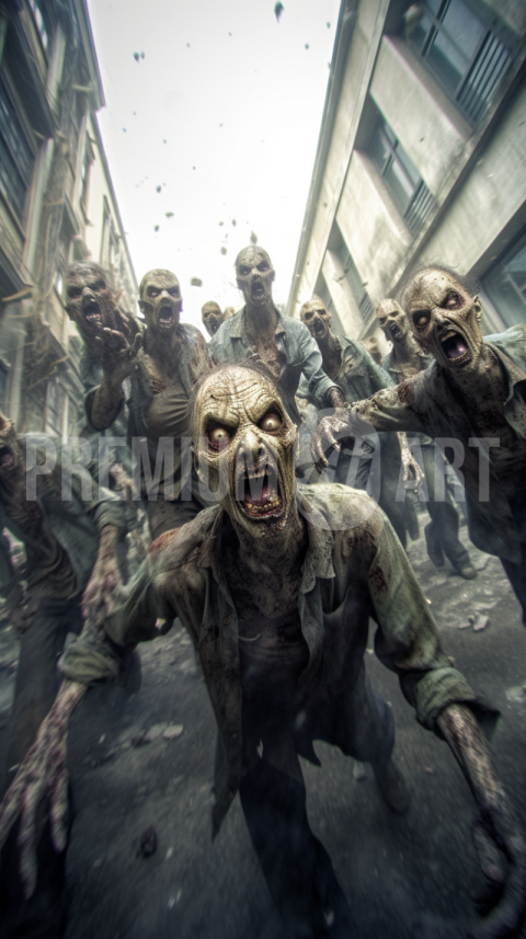 Zombies running towards you