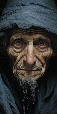 Photo of an Aztec with blue face and red eyes