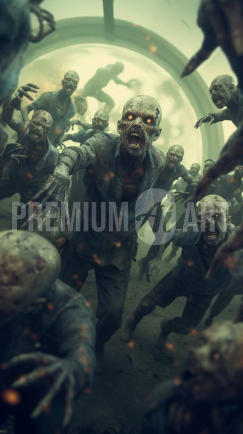 Zombies running towards you.