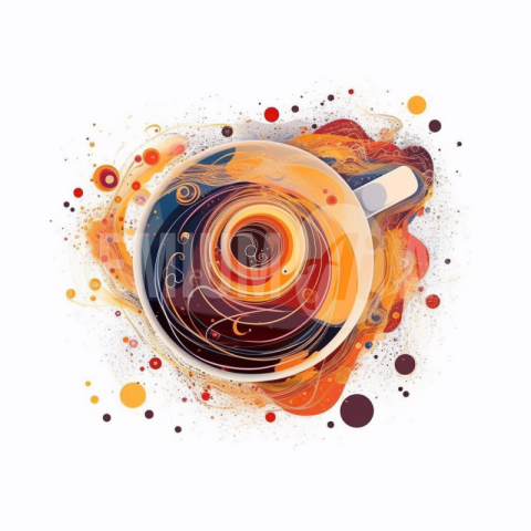 Abstract art coffee in a white cup design with swirls.