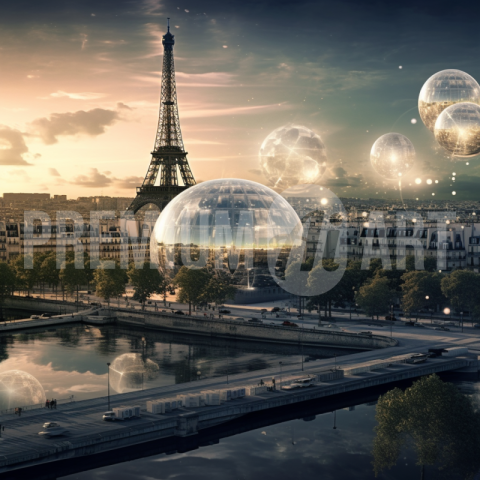 A futuristic vision of Paris, France.