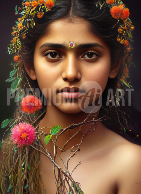Young Indian Woman with Twigs and Flowers