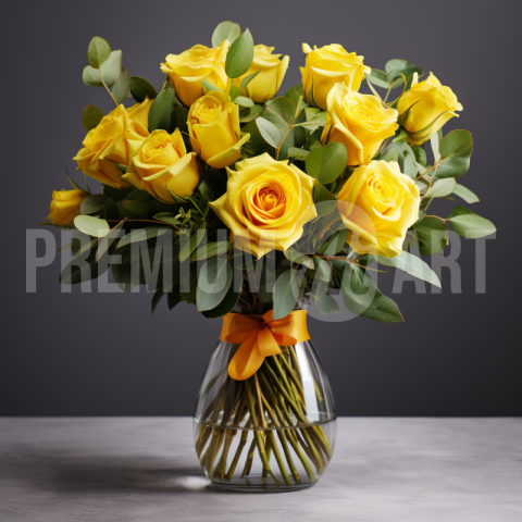 A bunch of yellow Roses flowers in a glass vase
