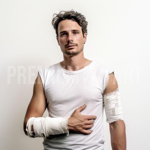 A man with bandage around arms